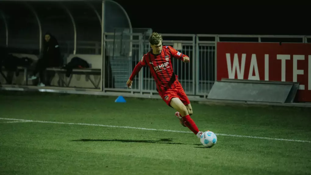 Dabei hätte die U19 nicht besser starten können. Bereits nach neunzig Sekunden schickte Tobias Weigel mit einem schönen Steckpass Yannik Wagner auf die Reise. Dieser blieb eiskalt vor dem Tor und schob zur frühen Führung ein. Gegen sehr spielstarke Gäste agierten die Heidenheimer mutig und pressten in der Anfangsphase die Hoffenheimer früh, sodass sich ein ausgeglichenes Spiel abzeichnete. Durch das hohe Pressing beider Teams entstanden viele Zweikämpfe, wodurch es zunächst nur wenige klare Torchancen gab. Zum Ende der ersten Halbzeit gewannen die Gäste etwas an Spielkontrolle und drückten die Heidenheimer tiefer in die eigene Hälfte. Die FCH U19 agierte in dieser Phase jedoch sehr kompakt, sodass Hoffenheim zu keiner echten Torchance kam.