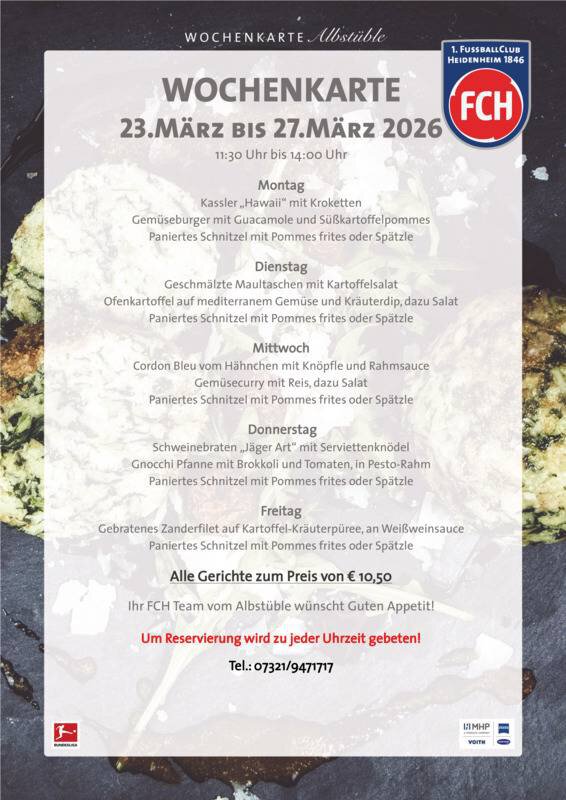 HIER findet Ihr die Wochenkarte vom 23. März bis zum 27. März.